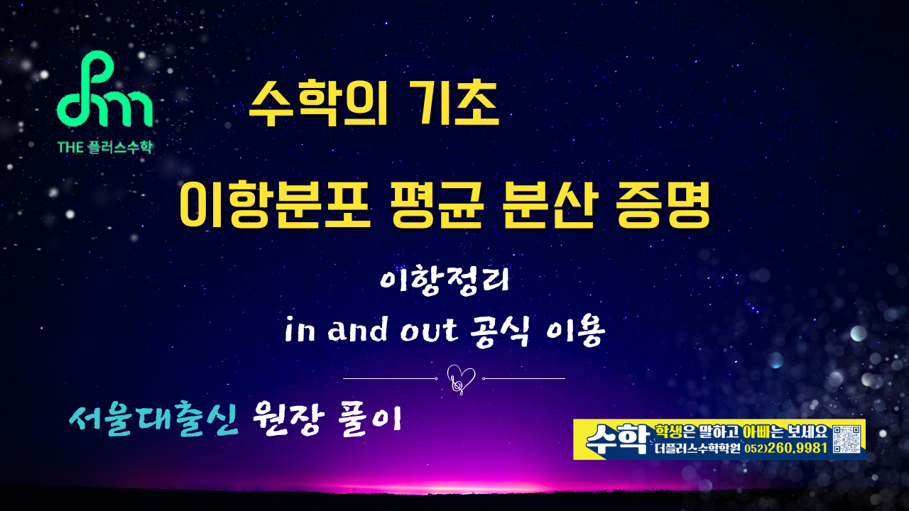 이번엔 이항분포의 평균과 분산이 각각 $np, npq$임을 증명할께요. 이때 사용되는 것은 이항정리