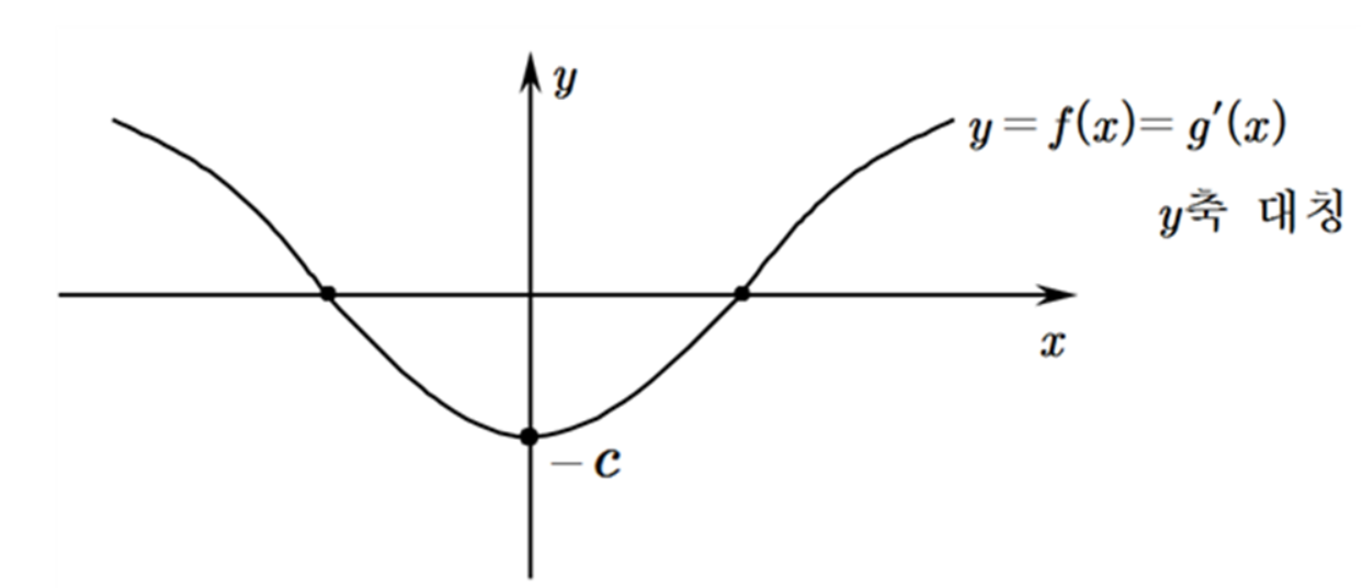 $ a= \alpha _ {1} $이라 두면 $ f ( x) $가 $ y $축에 대칭인 함수이므로 $ \displaystyle g ( x)= \int _ {\alpha _ {1} } ^ {x} {f ( t)dt} $는 $ \displaystyle g ( 0)= \int _ {\alpha _ {1} } ^ {0} {f ( x)dx} =2S+ ( -S)=S \neq 0 $이므로 원점에 대칭인 함수, 즉 기함수는 아니다. 그러나 $\displaystyle g ( x)=S+ \int _ {0} ^ {x} {f ( t)dt} $를 표현하면 여기서 $ \displaystyle h ( x)= \int _ {0} ^ {x} {} f ( t)dt $는 원점에 대칭인 함수이다. ($ \because $$ x $대신 $ -x $를 대입하고 $ f ( x) $가 $ f ( -x)=f ( x) $임을 이용하고 $ -t=s $로 치환하면 원점에 대칭임을 보일 수 있다.) ㅠㅠ 글로 표현하려하니 힘드네!!!