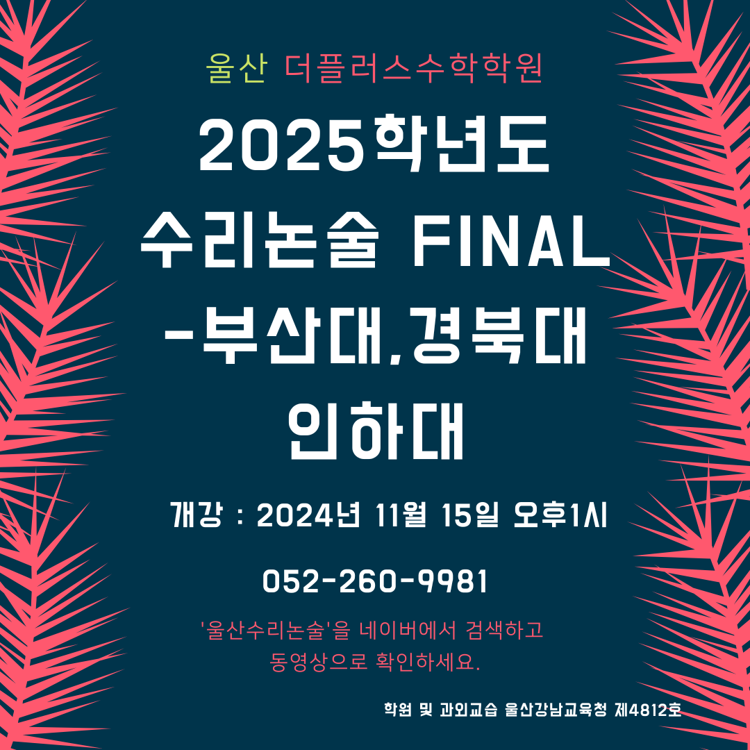 2025학년도 부산대, 경북대 수리논술 파이널반 개강합니다.