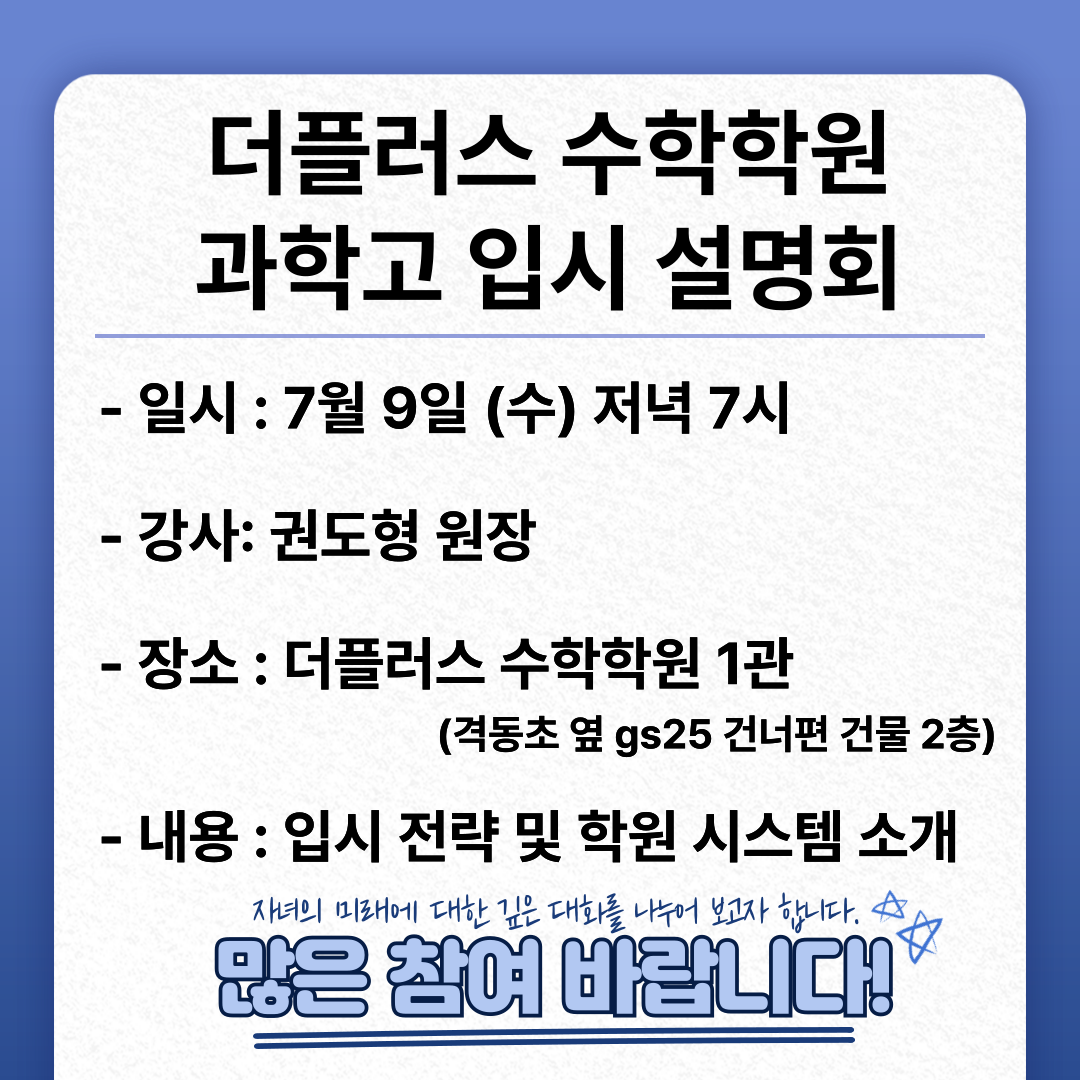🔔 더플러스 수학 학원 과학고 입시 설명회 안내
